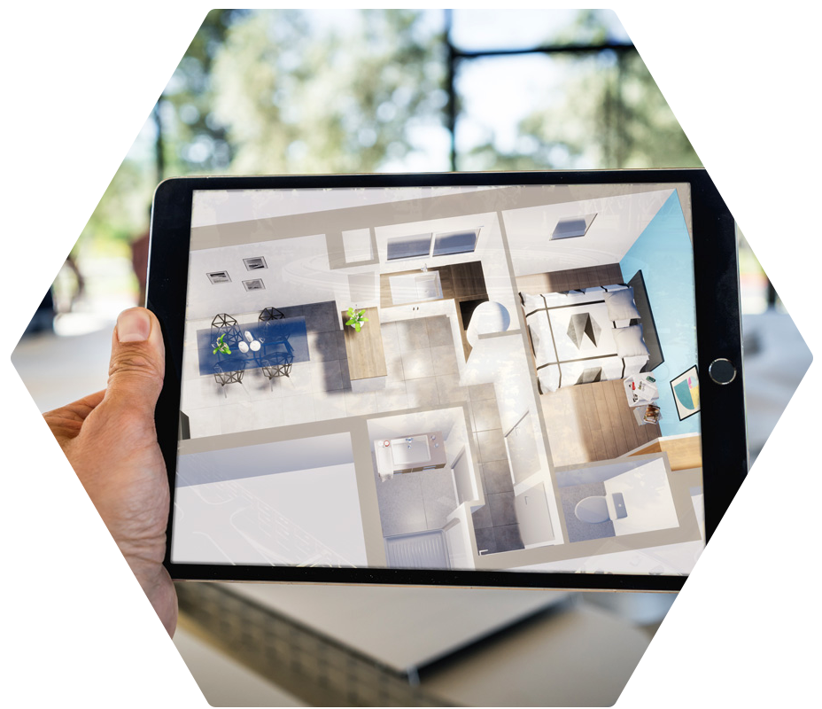 Support de visualisation à 360° dans l’appartement. Accessible facilement et compatible tous supports (web, mobile, VR…)